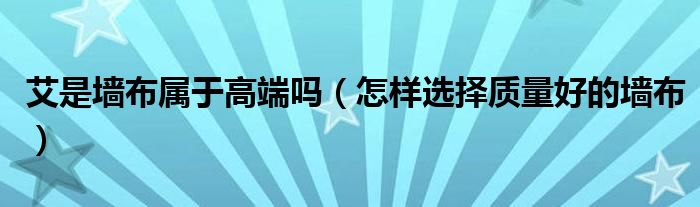 艾是墙布属于高端吗(怎样选择质量好的墙布)