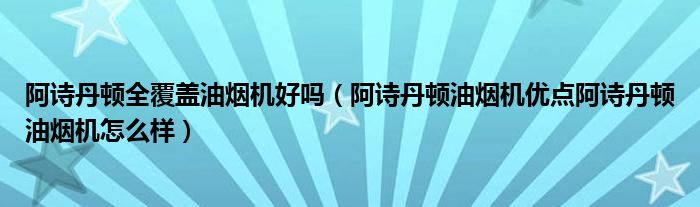 阿诗丹顿全覆盖油烟机好吗(阿诗丹顿油烟机优点阿诗丹顿油烟机怎么样)