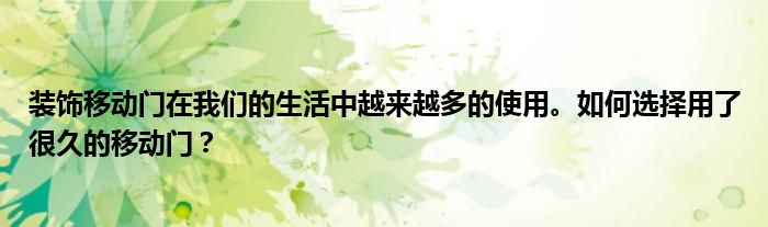 装饰移动门在我们的生活中越来越多的使用。如何选择用了很久的移动门?