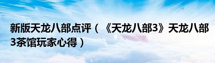 新版天龙八部点评(《天龙八部3》天龙八部3茶馆玩家心得)