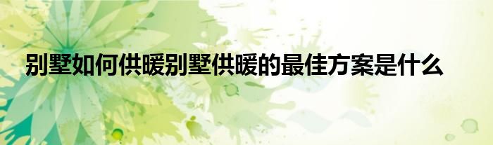 大家好,今天乐乐来为大家解答以上问题。别墅如何供暖别墅供暖的最佳方案是什么很多人还不知道,现在让我们一起来看看吧!
