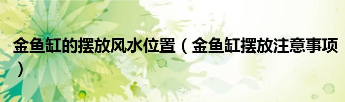 导读 大家好,今天乐乐来为大家解答以上问题。金鱼缸的摆放风水位置,金鱼缸摆放注意事项很多人还不知道,现在让我们一起来看看吧!一、金鱼缸的