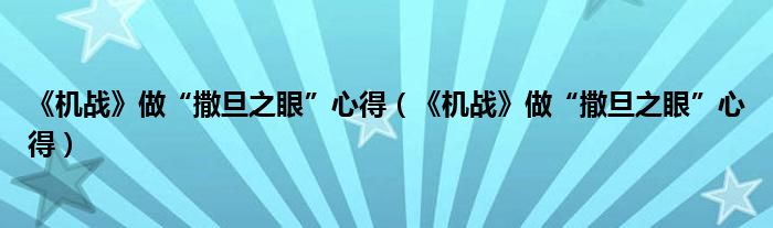 《机战》做“撒旦之眼”心得(《机战》做“撒旦之眼”心得)