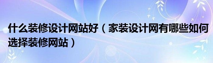 什么装修设计网站好(家装设计网有哪些如何选择装修网站)