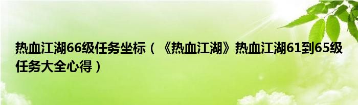 热血江湖66级任务坐标(《热血江湖》热血江湖61到65级任务大全心得)