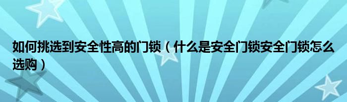 如何挑选到安全性高的门锁(什么是安全门锁安全门锁怎么选购)