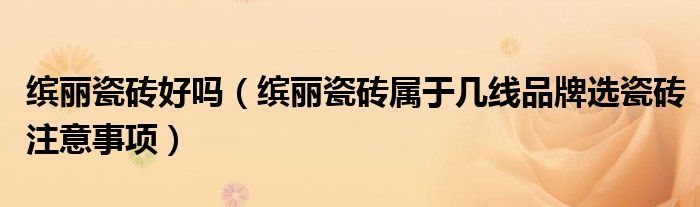 大家好,今天乐乐来为大家解答以上问题。缤丽瓷砖好吗,缤丽瓷砖属于几线品牌选瓷砖注意事项很多人还不知道,现在让我们一起来看看吧!