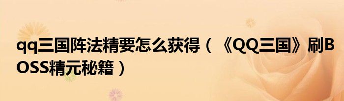 qq三国阵法精要怎么获得(《QQ三国》刷BOSS精元秘籍)