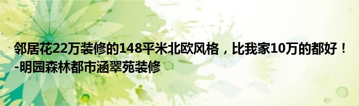 大家好,今天乐乐来为大家解答以上问题。邻居花22万装修的148平米北欧风格,比我家10万的都好!-明园森林都市涵翠苑装修很多人还不知道,现在让我们一起来看看吧!