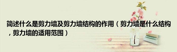 以上就是小编给大家介绍的剪力墙是什么结构,看了小编的介绍,大家对于剪力墙是什么结构的了解是不是更多了呢,希望能给大家带来帮助哦。