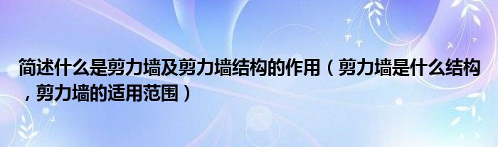 简述什么是剪力墙及剪力墙结构的作用(剪力墙是什么结构,剪力墙的适用范围)