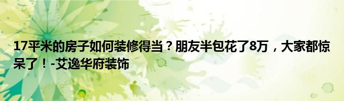 17平米的房子如何装修得当?朋友半包花了8万,大家都惊呆了!-艾逸华府装饰