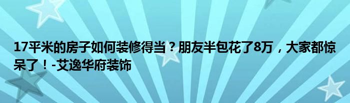 17平米的房子如何装修得当?朋友半包花了8万,大家都惊呆了!-艾逸华府装饰