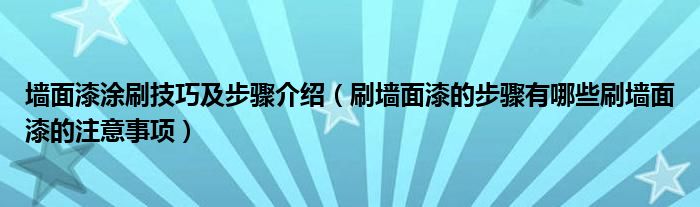 墙面漆涂刷技巧及步骤介绍(刷墙面漆的步骤有哪些刷墙面漆的注意事项)