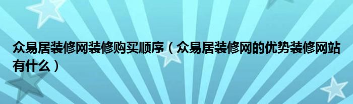 众易居装修网装修购买顺序(众易居装修网的优势装修网站有什么)