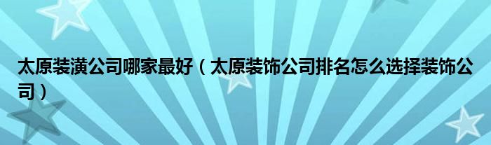 太原装潢公司哪家最好(太原装饰公司排名怎么选择装饰公司)