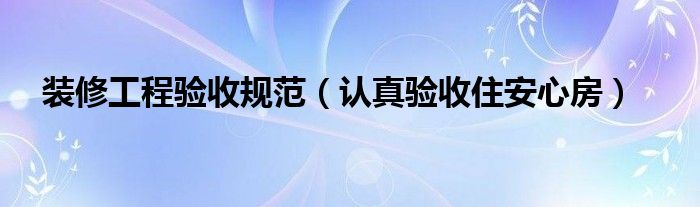 装修工程验收规范(认真验收住安心房)