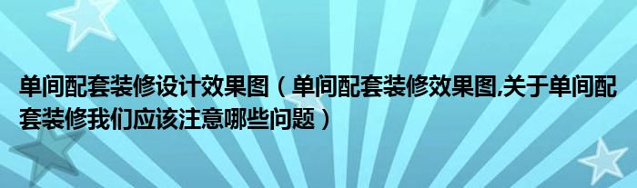 单间配套装修设计效果图(单间配套装修效果图,关于单间配套装修我们应该注意哪些问题)