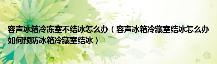 容声冰箱冷冻室不结冰怎么办(容声冰箱冷藏室结冰怎么办如何预防冰箱冷藏室结冰)
