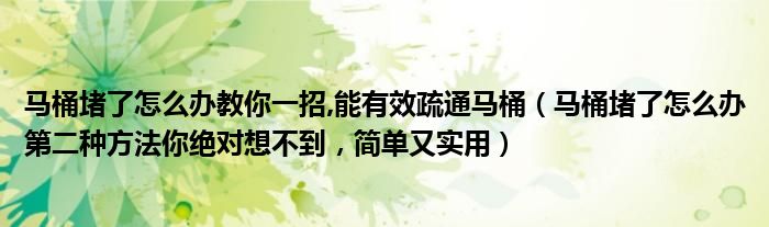 马桶堵了怎么办教你一招,能有效疏通马桶(马桶堵了怎么办第二种方法你绝对想不到,简单又实用)