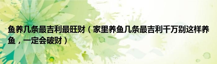 鱼养几条最吉利最旺财(家里养鱼几条最吉利千万别这样养鱼,一定会破财)