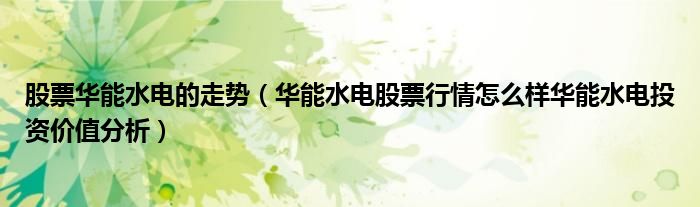 华能水电投资价值分析?