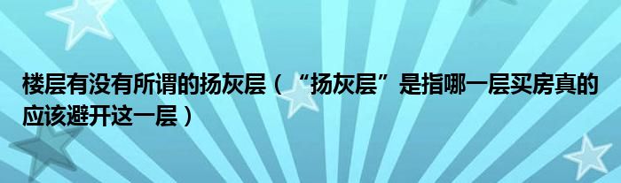 楼层有没有所谓的扬灰层(“扬灰层”是指哪一层买房真的应该避开这一层)
