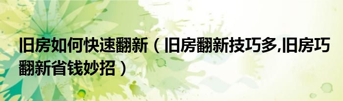 旧房如何快速翻新(旧房翻新技巧多,旧房巧翻新省钱妙招)
