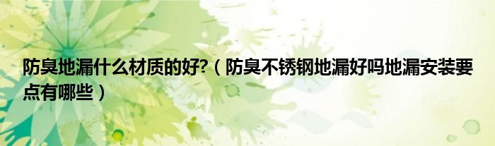 导读 大家好,今天乐乐来为大家解答以上问题。防臭地漏什么材质的好?,防臭不锈钢地漏好吗地漏安装要点有哪些很多人还不知道,现在让我们一起来