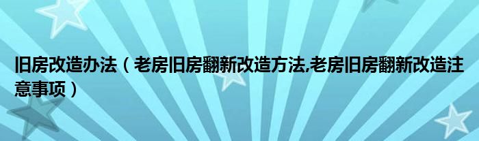 旧房改造办法(老房旧房翻新改造方法,老房旧房翻新改造注意事项)