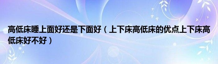大家好,今天乐乐来为大家解答以上问题。高低床睡上面好还是下面好,上下床高低床的优点上下床高低床好不好很多人还不知道,现在让我们一起来看看吧!
