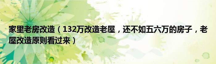 家里老房改造(132万改造老屋,还不如五六万的房子,老屋改造原则看过来)