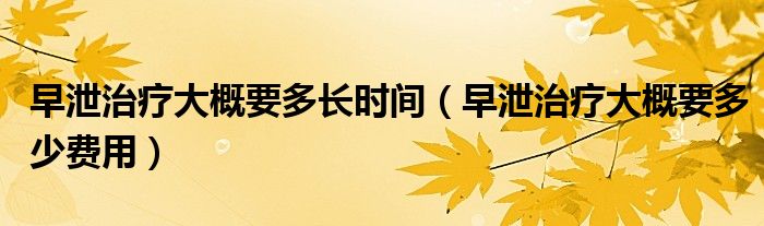 早泄治疗大概要多长时间(早泄治疗大概要多少费用)