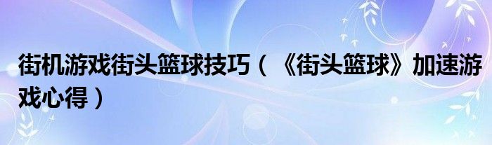 街机游戏街头篮球技巧(《街头篮球》加速游戏心得)