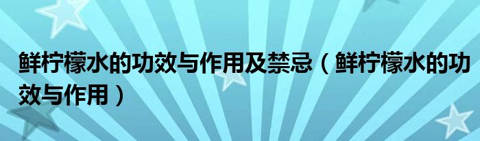 导读 大家好,linda来为大家解答以上的问题。鲜柠檬水的功效与作用及禁忌,鲜柠檬水的功效与作用很多人还不知道,现在让我们一起来看看吧!鲜柠