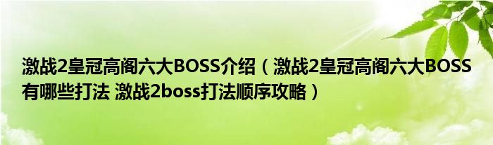激战2皇冠高阁六大BOSS介绍(激战2皇冠高阁六大BOSS有哪些打法 激战2boss打法顺序攻略)