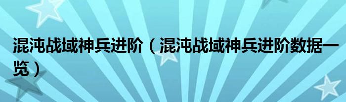 混沌战域神兵进阶(混沌战域神兵进阶数据一览)