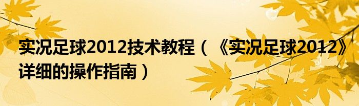 实况足球2012技术教程(《实况足球2012》详细的操作指南)