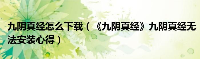 九阴真经怎么下载(《九阴真经》九阴真经无法安装心得)