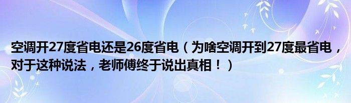 空调开27度省电还是26度省电(为啥空调开到27度最省电,对于这种说法,老师傅终于说出真相!)