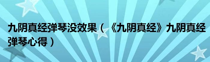 九阴真经弹琴没效果(《九阴真经》九阴真经弹琴心得)