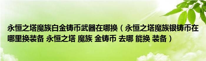 永恒之塔魔族白金铸币武器在哪换(永恒之塔魔族银铸币在哪里换装备 永恒之塔 魔族 金铸币 去哪 能换 装备)
