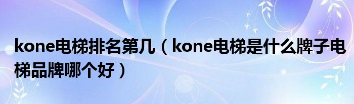kone电梯排名第几(kone电梯是什么牌子电梯品牌哪个好)