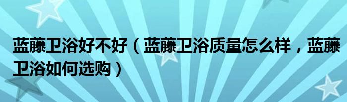 蓝藤卫浴好不好(蓝藤卫浴质量怎么样,蓝藤卫浴如何选购)