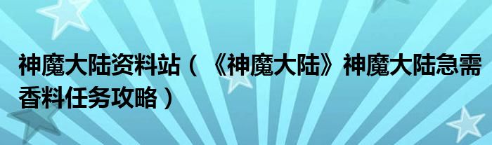 神魔大陆资料站(《神魔大陆》神魔大陆急需香料任务攻略)