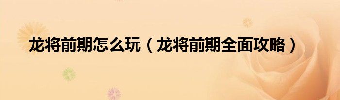 龙将前期怎么玩(龙将前期全面攻略)