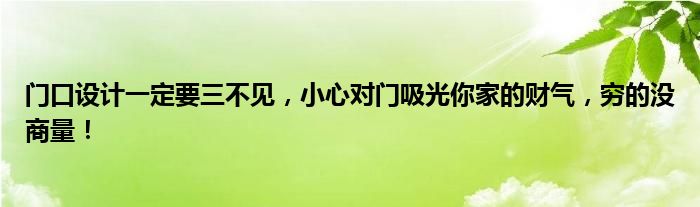 门口设计一定要三不见,小心对门吸光你家的财气,穷的没商量!