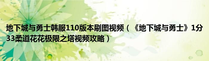 导读 大家好,太太来为大家解答以上问题。地下城与勇士韩服110版本刷图视频,《地下城与勇士》1分33柔道花花极限之塔视频攻略很多人还不知道,现