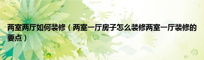 两室两厅如何装修(两室一厅房子怎么装修两室一厅装修的要点)