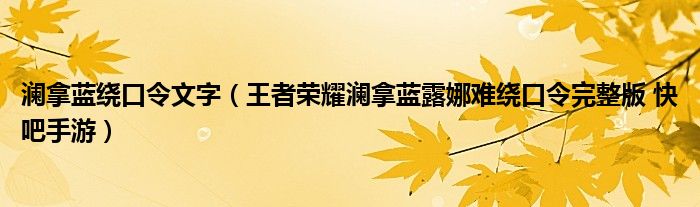 澜拿蓝绕口令文字(王者荣耀澜拿蓝露娜难绕口令完整版 快吧手游)